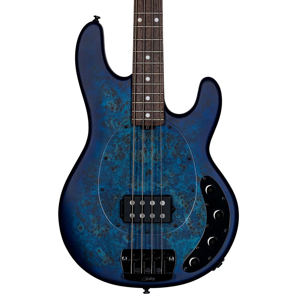 The StingRay Ray34 Poplar Burl bass features the iconic sound of the Music Man StingRay with an updated exotic wood look. Complemented by a roasted maple neck, a 3-band active preamp, and a bridge modeled after the classic Ernie Ball Music Man StingRay, this Ray34PB is sure to be a stand out in any collection. Available in Neptune Blue Satin and Trans Black Satin.