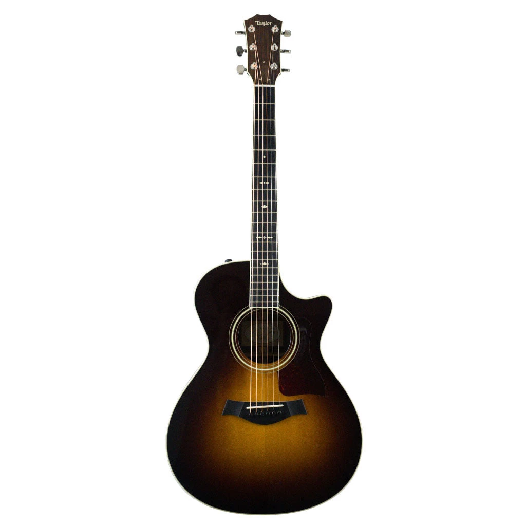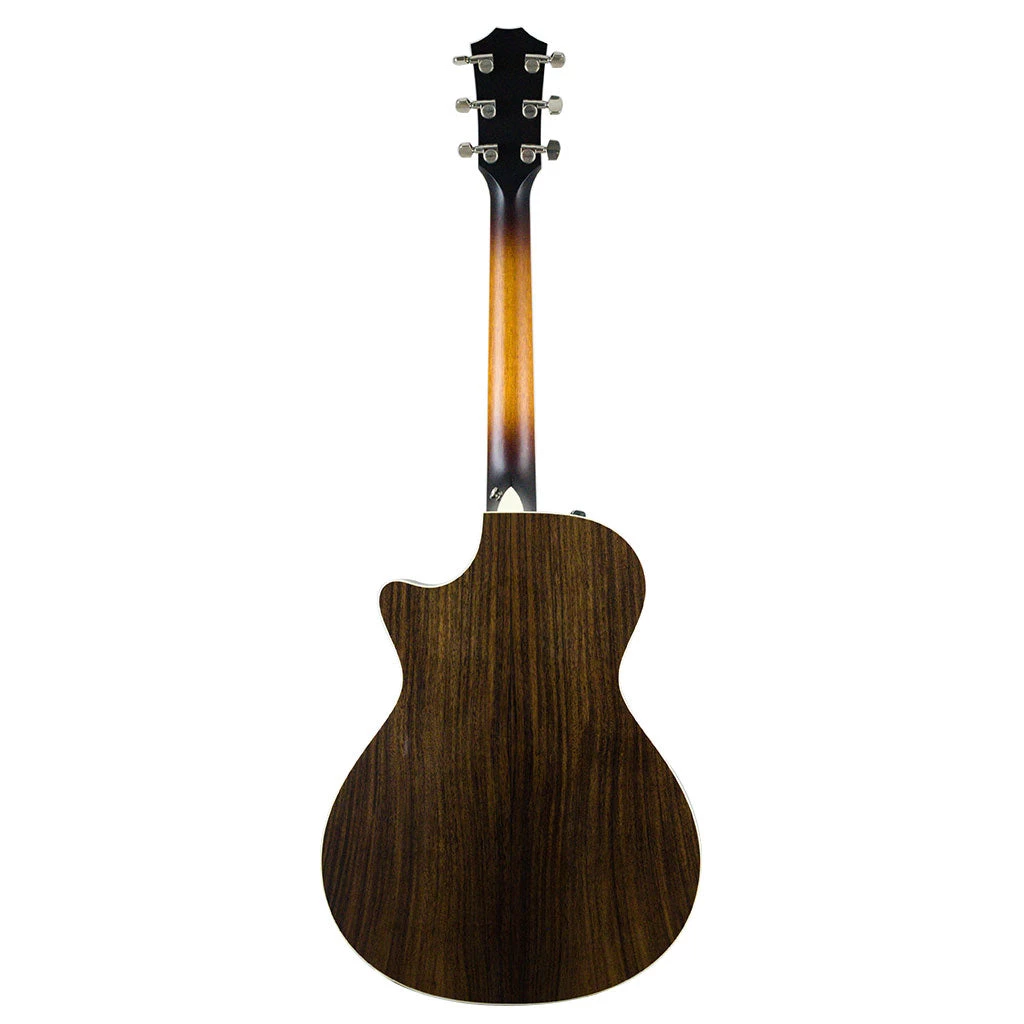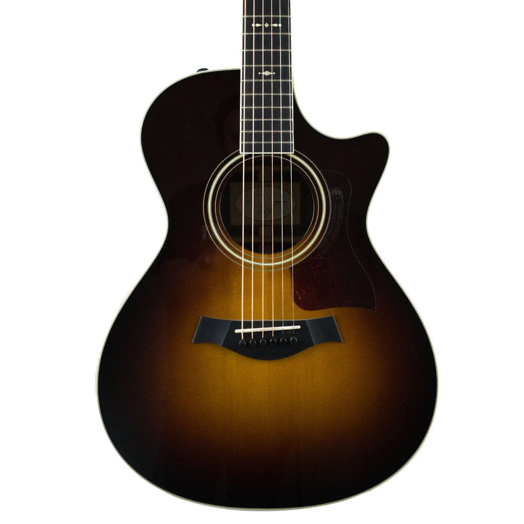 The rosewood and Lutz spruce 712ce pairs Taylor’s cutaway Grand Concert body with a shorter scale length of 24-⅞ inches for a physically compact and intimate playing experience, making fretting chords easier and reducing the guitar’s string tension for a slinky fretting-hand feel. New this year, we’ve added V-Class bracing, our new interior sonic engine, which brings new levels of power and sustain to this small-bodied guitar. Fingerstyle players will love the Grand Concert’s responsiveness together with the articulate sonic detail of the rosewood/Lutz spruce wood combo, and the Venetian cutaway offers more room to play up the neck. Wood-rich aesthetic details include Hawaiian koa binding, a herringbone-style rosette featuring Douglas fir with maple/black accents, and bias-cut Douglas fir top trim, while a new “weathered brown” pickguard design complements the earthy color tones of the rosewood and wood trim. Taylor’s onboard ES2 electronics add a pro-grade pickup and preamp for impeccable amplified acoustic tone.