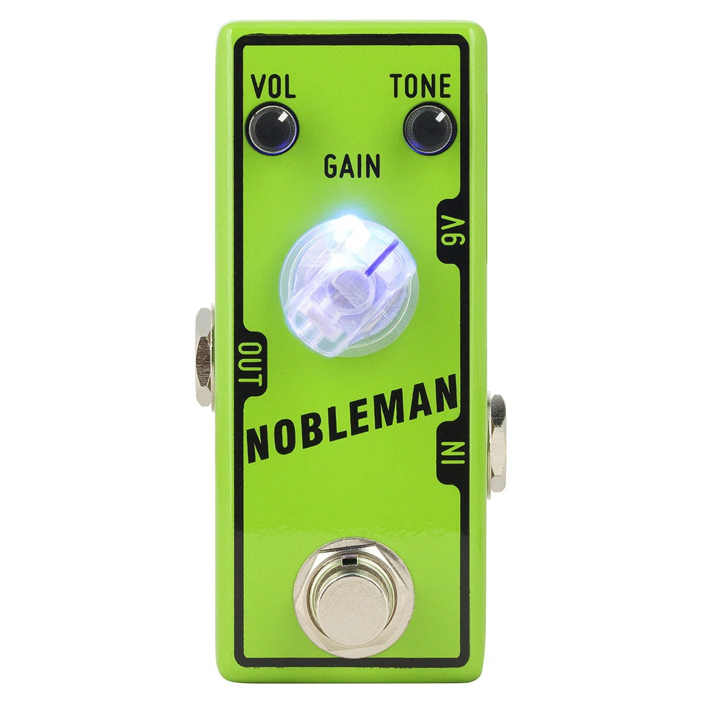 The Tone City Nobleman is inspired by a classic green overdrive pedal from Germany, that was designed as an alternative to the coloring, mid-boosting overdrive pedals in the ’80s. The Nobleman features a ‘natural overdrive’ tone and an open, musical sound without changing the character of the instrument and the amplifier. The pedal reacts sensitive to the guitar’s Volume control and playing dynamics.
