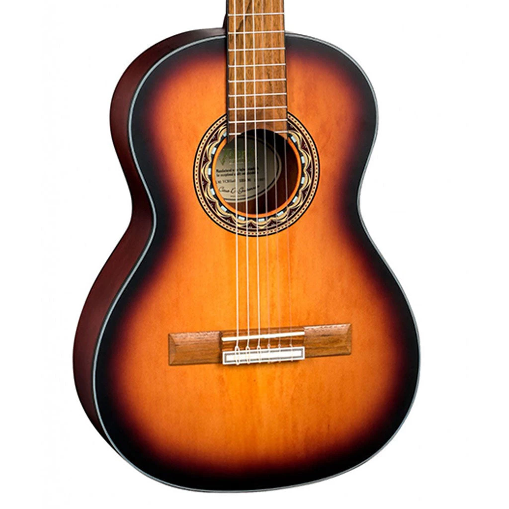 Gold machine heads with black button tuners give the Valencia Series 300 range a uniqueness not offered by any other brand. With a transparent, satin finish and stylish rosette decoration the Series 300 is truly inspired!