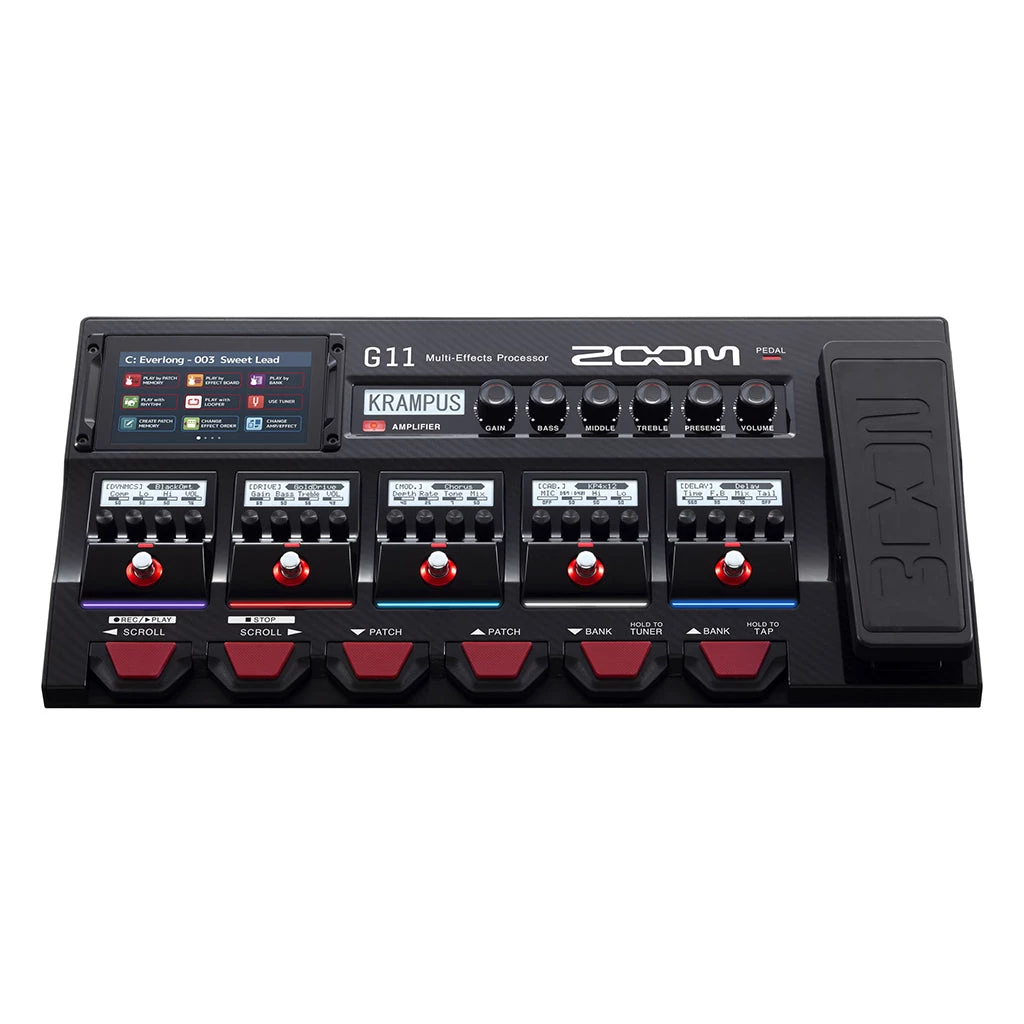 Get yourself a stadium-ready sound in a portable package with the Zoom G11 Multi-Effects Processor, a pedalboard with everything you need to get rocking and rolling. This unit offers a dedicated amp-modeling panel, five stompbox switches, and a foot pedal for expression and volume controls. With a touchscreen interface, securing your guitar tone is easier than ever, simply drag and swipe among all your options for a great tone.